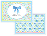 - Placemat: 12” H x 18” W, sealed with a heavy laminate to be wiped clean