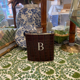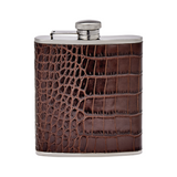 A stainless steel flask wrapped with Crocodile embossed Italian leather.