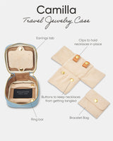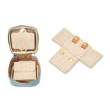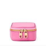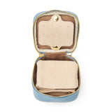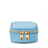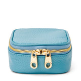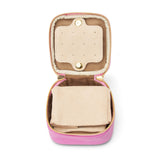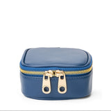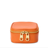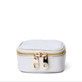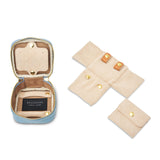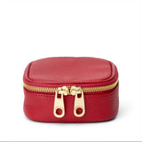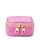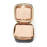 This elegant and compact jewelry case will keep all your valuables organized. The lid has a removable earring organizer with magnetic clasps. The base has two sewn on microsuede ring straps. There is one microsuede removable pouch. The necklace keeper is made of microsuede and designed to keep all your chains protected and tangle free. Made of full grain leather.