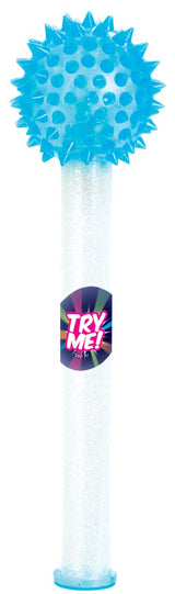 Tap this popular Cosmic Ray Light-Up Wand toy and it flashes with a 15-second multi-colored light show. Wands have a squeezable soft rubber spiky top. Assorted colors.