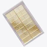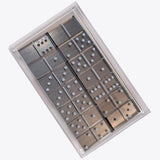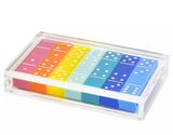 A modern set of dominoes nestled in a lucite box can be beautifully displayed on a coffee table.