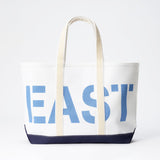 A fun spin on a classic tote for an East Coaster. One side is printed with EAST and the other with COAST.