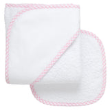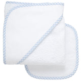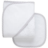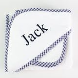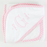 This adorable hooded towel and washcloth set is made of extra soft, pure cotton terry for newborn’s sensitive skin. The towel is large enough that it can last well into the toddler years. The hood is covered with a pique layer, which helps to hold a monogram beautifully and is backed with terry cloth for extra absorbency. The washcloth is trimmed with coordinating gingham fabric, making it the perfect bath time set.
