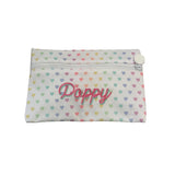 One of our most popular pouches, this coated flat zip pouch is an adorable way to keep things organized. Your toiletries, pens and pencils, small toys or other small items will now be easily stowed. No more random trinkets rolling around in the bottom of your bag.