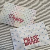 One of our most popular pouches, this coated flat zip pouch is an adorable way to keep things organized. Your toiletries, pens and pencils, small toys or other small items will now be easily stowed. No more random trinkets rolling around in the bottom of your bag.