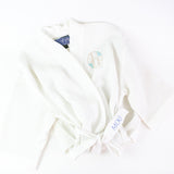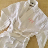 Bring the spa home with this kimono bathrobe. A perfect gift for the bride, bridesmaid, and college-bound student. 3/4 length sleeves, two patch pockets, belt loop, and self-belt.