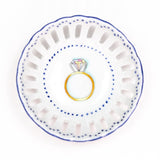 Perfectly handcrafted, this ring dish is essential for your sink or nightstand. Hand painted porcelain. Made in the USA.