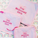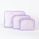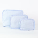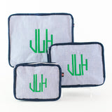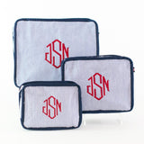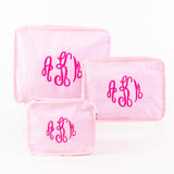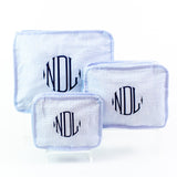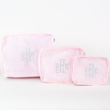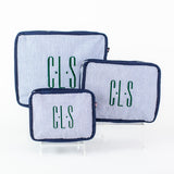 This three piece set makes organizing just that much easier. Perfect for a diaper bag or suitcase, these little bags will simplify your travel experience. Their flat tops will also perfectly compliment a monogram.