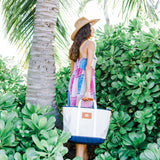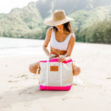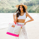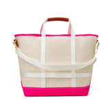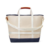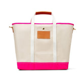 The Kennedy Coated Canvas Tote is just big enough to take everywhere. It features a detachable shoulder strap, leather wrapped handles and a strap to slide over luggage handles. A smaller version of our Avery Coated Jumbo Tote.