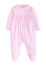 Welcome your new baby home with this classic smocked Welcome Home Layette Footie. Made from 100% Pima cotton, this super soft footie features dainty picot trim and smocked detail across the bust. Snap closure in back and at stride.