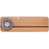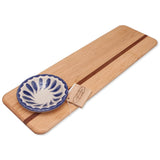 A solid maple serving platform for loaves of bread accompanied by your favorite olive oil or dip.