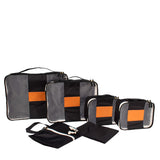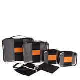 Dimensions: X Large Packing Cube is 17" L x 12" W x 4" H, Large Packing Cube is 13" L x 10.5" W x 4" H, Small Packing Cubes are 8.5" L x 7" W x 4" H, Shoe Bag is 15" W x 9" H and Laundry Bag is 12" W x 14" H