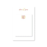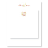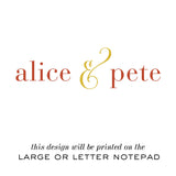 Our Partner Pair Notepads are the perfect addition to any home. Each pair is personalized for you or the recipient and includes either a Small and Large notepad or a Square and Letter notepad. These sets come with the font, monogram and ink colors shown.