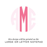 Our Partner Pair Notepads are the perfect addition to any home. Each pair is personalized for you or the recipient and includes either a Small and Large notepad or a Square and Letter notepad. These sets come with the font, monogram and ink colors shown.
