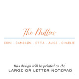 Our Partner Pair Notepads are the perfect addition to any home. Each pair is personalized for you or the recipient and includes either a Small and Large notepad or a Square and Letter notepad. These sets come with the font, monogram and ink colors shown.