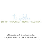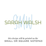 Our Partner Pair Notepads are the perfect addition to any home. Each pair is personalized for you or the recipient and includes either a Small and Large notepad or a Square and Letter notepad. These sets come with the font, monogram and ink colors shown.