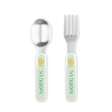 - Fork & Spoon: 5.5" L stainless steel, dishwasher safe