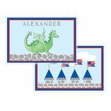 - Placemat: 12” H x 18” W, sealed with a heavy laminate to be wiped clean