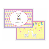 - Placemat: 12” H x 18” W, sealed with a heavy laminate to be wiped clean