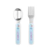 - Fork & Spoon: 5.5" L stainless steel, dishwasher safe