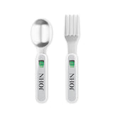 - Fork & Spoon: 5.5" L stainless steel, dishwasher safe