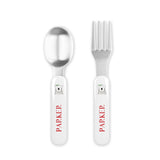 - Fork & Spoon: 5.5" L stainless steel, dishwasher safe