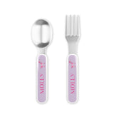 - Fork & Spoon: 5.5" L stainless steel, dishwasher safe