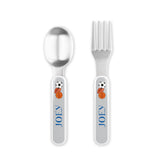 - Fork & Spoon: 5.5" L stainless steel, dishwasher safe