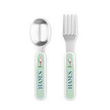 - Fork & Spoon: 5.5" L stainless steel, dishwasher safe