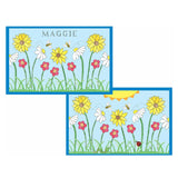 - Placemat: 12” H x 18” W, sealed with a heavy laminate to be wiped clean