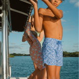 Minnow's best selling boy's board short gets an update in a blue floral.