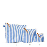 The small size is great for toting everything from makeup, credit cards, cables and cash. The medium size is great for toting everything from makeup, power banks and batteries to socks and undies. The large size is great for toting everything from your workout gear and shoes to snacks and toiletries.