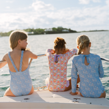 This new one piece is a new Minnow favorite designed with Liberty of London fabric. Detailed with sweet ruching, it's fully lined for form and function in and out of the water — and perfect for long days in the sun.