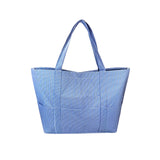 A large coated tote built to hold all your daily essentials. From the pool to the beach to every day life, this tote is sure to be a go to. A perfect diaper bag or tote for a mom on the go. This tote is complete with a trolley pocket, multiple exterior pockets and a snap closure. The best part is that the glossy coated exterior makes it easy to wipe clean.