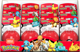A Poke Ball with a buildable Pokemon figure inside. Ball doubles as a display stand. Assorted characters - Bulbasaur, Charmander, Squirtle, Pikachu, Jigglypuff and Meowth.
