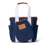 This pickleball tote is made of sturdy stain and water resistant acrylic cloth. Features an interior divider for balls and a hook on the backside to hang.