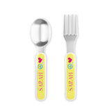 - Fork & Spoon: 5.5" L stainless steel, dishwasher safe
